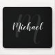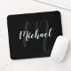 Modern Script Personalized Monogram and Name Black Mouse Pad