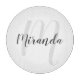 featuring personalized name in grey modern script font style and monogram in light grey modern script font style as background