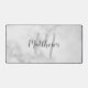 featuring personalized name in grey modern script font style and monogram in light grey modern script font style as background,