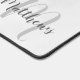 featuring personalized name in grey modern script font style and monogram in light grey modern script font style as background,