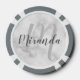 featuring personalized name in grey modern script font style and monogram in light grey modern script font style as background