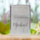 featuring personalized name in grey modern script font style and monogram in light grey modern script font style as background.