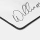 This design features personalized name in grey modern handwriting script font on white marble background.