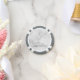 featuring personalized name in grey modern script font style on white marble background.