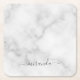 Modern Script Personalized Name White Marble Paper Coaster