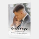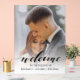 Greet your guests with a touch of modern elegance and a personal touch. This custom acrylic wedding welcome sign features a stunning faded photo background of the happy couple, overlaid with sophisticated, fluid modern script typography. The minimalist design ensures your names and wedding date stand out, creating a beautiful focal point for your ceremony or reception entrance.