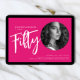 Modern Script Photo 50th Birthday Party Hot Pink Invitation
