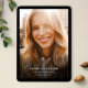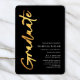 This is a minimalist and modern graduation announcement card. It is a simple and stylish handwritten script design in classic black, white and gold, with a photo at the back. Please contact the designer for any queries about this design.