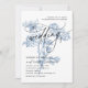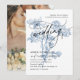 Modern Script Photo Blue Floral Wedding Invitation