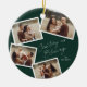 Modern Script 4 Photo Collage Green Religious Christmas Ceramic Ornament. Click the personalize button to customize this design with your photos and text.