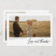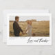 An elegant and modern wedding thank you card. Your photo on the front will be cropped to an arch shape, and you can personalize the template with your first names and wedding date. Re-color, re-size, and re-position the "Love and Thanks" text as needed. On the back of the card, you have room for a horizontal photo as well as a heartfelt personalized message and signature line. © Kimbellished, LLC
