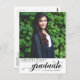 Announce your graduation to family and friends with these trendy graduation announcement postcards! This modern stylish graduation announcement features beautiful script text spelling out the word graduation with a text template to personalize with the name, school and graduating year. Add additional message or click '' customize further''to edit this template.