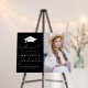 Modern graduation party sign featuring a bold graduation cap with white handwritten script accents on a black background. Personalize the simple graduation sign with the graduate's name, school name, graduation year, and vertical photo. The photo graduation sign is perfect for celebrating both high school and college graduates!