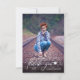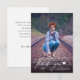 This simple photo graduation thank you card features modern script "thank you" that appears in white on top of the photo. The backside offers custom text for a personal thank you message.