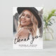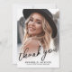 This simple and minimalist graduation thank you card features a full-page photo on the front with a soft white gradient at the bottom, paired with black text for a clean, modern look. “Thank You” is displayed in elegant handwritten script, creating a timeless and understated design.