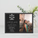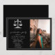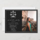 Plain white envelopes are included with paper invitations and will come to fit the invitation size you select. If you don’t need the envelopes, you may choose to not receive them by selecting the dropdown below "Envelopes" and choosing "None." If you’d like to have a design on your envelopes, you can browse all of these available envelopes to find the design that complements your Modern Script Photo Law School Graduation Party Invitation.