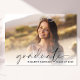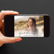 Elegant graduation announcement flat card featuring the graduate's photo overlayed with "graduate" in a thin modern script and their name and class year in simple typography.