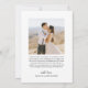 Clean and contemporary, this white flat thank you card places "thank you" in elegant calligraphy script above a large full-width photo, with names and wedding date beneath. The back features a second portrait-style photo alongside a warm, customizable message. The bright white layout lets your photography take the lead while the refined script adds a stylish finishing touch. All text is fully editable.