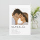 This wedding save the date card features a classic, modern minimal layout with a sleek photo template. The bottom section provides ample space to include your wedding website details. The design strikes a perfect balance between elegance and simplicity, making it an ideal choice for couples looking for a contemporary way to announce their special day. Choose from physical or digital download options.