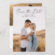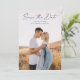 Modern Script Photo Wedding Save the Date card. The back includes a second photo with additional details. Click the edit button to customize this design with your photos and wedding details.
