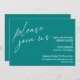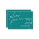 Yes, you can print on the back of your invitation for free! Most designs already have a corresponding design on the back that can be personalized using the Design Tool and going to Layers. This is a great way to communicate more information or further personalize your Modern Script Please Join Us Teal Wedding Invitation. The option is really up to you.