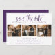 Elegant purple wedding 3 photo save the date cards with modern calligraphy. Easily personalize this card with your images and wedding details including a wedding website.