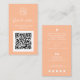 Modern script QR code peach order thank you Business Card