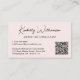 Professional light pink business card featuring your name showcased in a chic modern script and your title and contact information (such as email, telephone numbers, firm name and mailing address) in clean, simple lettering. Input a URL address to create a scannable QR code linked to your website, social media profile, or other platform that showcases your work, making it easy for others to explore your expertise. Add additional text on the back or leave blank.