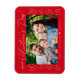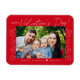 Modern Valentine's day magnet featuring "Happy Valentine's Day" in a trendy white script with hand-drawn hearts along the sides of the design on a red background. Your horizontal photo is displayed near the middle of the design. Personalize the Valentine's Day photo magnet by adding your name and the year in white lettering.
