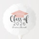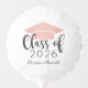 Celebrate your graduate with this charming balloon featuring a modern script Class of headline and a rose gold graduation cap detail. The graduate's name appears in delicate calligraphy beneath the customizable class year, adding a personal touch to your party decor. A lovely accent for graduation bouquets, centerpieces, or photo backdrops. Available in multiple sizes.
