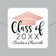 Custom graduation stickers feature a modern and elegant personalized design with the graduate's name, their class year in trendy black calligraphy script, and a rose gold / blush pink colored grad cap motif. Use to accent announcement card envelopes or graduation party favors!