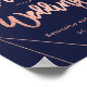 Modern script rose gold navy welcome wedding sign with geometric terrarium