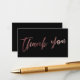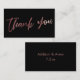 Whether you use this card as a wedding favor tag or replace the name and date fields with a personal message, its sophisticated, modern design is sure to grab the attention of those who receive it. The background is covered in editable black; change this to any color you prefer. Featuring a modern brushed handwriting graphic overlay reading "thank you", your important message of gratitude is front-and-center and impossible to miss. Update the back with your personal details using the template fields, or click to customize further and make this design your own. // 100 // Designed by Melody Watson for Paper Muserie.