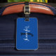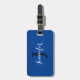 Modern Script Royal Blue White Monogram Bag Tag makes a great gift idea for anyone who travels! Dark blue background can be customized to any available color options. The front is designed with a navy monogram initial on the center and personalized with name in