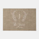 Family monogram, name and established year elegant chic rustic country farmhouse style dark beige burlap linen pattern doormat. +++++++ A modern keepsake gift for weddings, anniversaries, housewarmings, Thanksgiving, Christmas, or any other occasion.