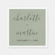 Create your own engagement, shower or wedding napkins using our personalized sage green wedding paper napkins template featuring a modern script font. Easily personalize online with your details. Matching items available to complement these minimalist, yet elegant sage green wedding paper napkins.