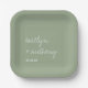 Modern Script Sage Green Minimalistic Wedding Paper Plates