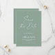 Modern Elegant script sage green typography wedding save the date announcement.