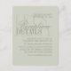 Invite guests to join the reception of your big day with this Modern Script Sage Green Wedding Details Enclosure Card! This design features elegant script font with a luxe sage green color perfect for your formal wedding. Easily customize the details with Zazzle's design tool! Have a custom request? Message me!