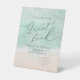 Beautiful turquoise abstract watercolor sparkling ocean wave and hearts in the sand beach background, toped with stylish script and elegant serif font, modern and simple. Great wedding guest book sign for nautical beach bridal shower, tropical destination wedding, coastal ocean themed party.