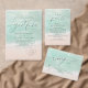 Beautiful turquoise abstract watercolor sparkling ocean wave and hearts in the sand beach background, toped with stylish script and elegant serif font, modern and simple. Great rehearsal dinner invitations for for nautical beach wedding, tropical destination wedding, coastal ocean themed wedding in summer.