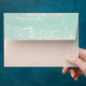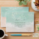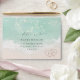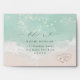 Beautiful turquoise abstract watercolor sparkling ocean wave and hearts in the sand beach background, toped with stylish script and elegant serif font, modern and simple. Great RSVP envelopes for nautical beach wedding, tropical destination wedding, coastal ocean themed wedding in summer.