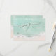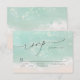 Beautiful turquoise abstract watercolor sparkling ocean wave and hearts in the sand beach background, toped with stylish script and elegant serif font, modern and simple. Great RSVP cards for nautical beach wedding, tropical destination wedding, coastal ocean themed wedding in summer.