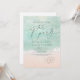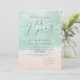 Beautiful turquoise abstract watercolor sparkling ocean wave and hearts in the sand beach background, toped with stylish script and elegant serif font, modern and simple. Great happily ever after party invitation for nautical beach wedding, tropical destination wedding, coastal ocean themed wedding in summer.