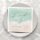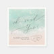 Beautiful turquoise abstract watercolor sparkling ocean wave and hearts in the sand beach background, toped with stylish script and elegant serif font, modern and simple. Great she said yes napkins for nautical beach wedding shower, tropical destination engagement party, coastal ocean themed bridal shower in summer.