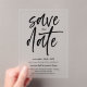 Keep it timeless with this Simple Script Save the Date Frosted Acrylic Invitation, featuring a clean and elegant design that focuses on the essentials. The card showcases a beautiful flowing script font for the phrase "Save the Date," giving it a touch of romance and sophistication without any fuss.