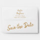 Modern Golden Script Save the Date Return Address Wedding envelope. Personalize the envelope with the bride`s and groom`s names and the address. Change or erase the Save the date text. Great for your wedding, engagement and save the date mailing.