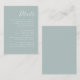 This simple modern wedding details enclosure card features white text on a sea glass green background. The title appears in stylish handwriting calligraphy. Add the details of your wedding, such as reception time and location, accommodation arrangements, and your wedding website URL, in sans serif font. The reverse side is solid sea glass.