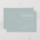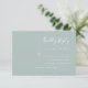 This simple modern wedding RSVP enclosure card features white text on a sea glass blue-green background. The title appears in stylish handwriting calligraphy. Customize the remaining text in sans serif font. The reverse side is solid sea glass.