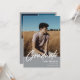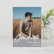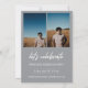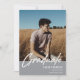 Modern white script "Graduate" overlay, senior class photo graduation announcement and invitation in gray. Template lines for graduate's name, class of year and school. Back of card features 2 additional photo spaces with text lines for your open house/graduation party details.
